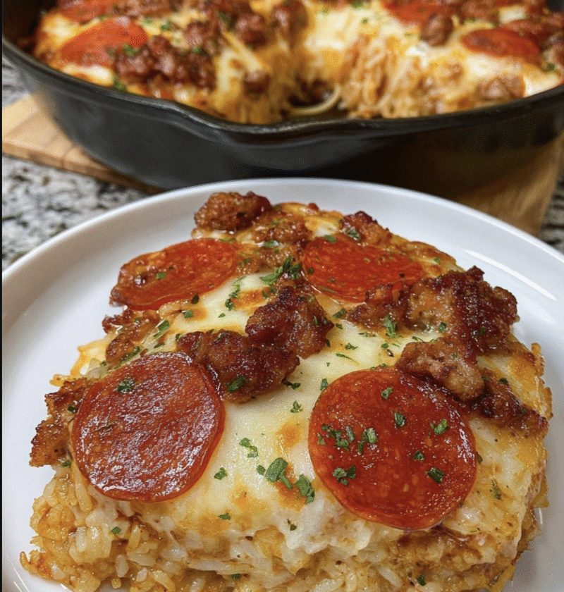 To make this dish low-carb, swap the rice for cauliflower rice or zucchini noodles. This modification reduces the carb content while still delivering the flavors of a meat lover’s pizza.