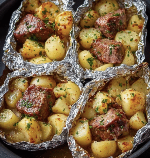 Juicy Garlic Butter Steak and Crispy Potato Foil Packets: A Weekly Craving!